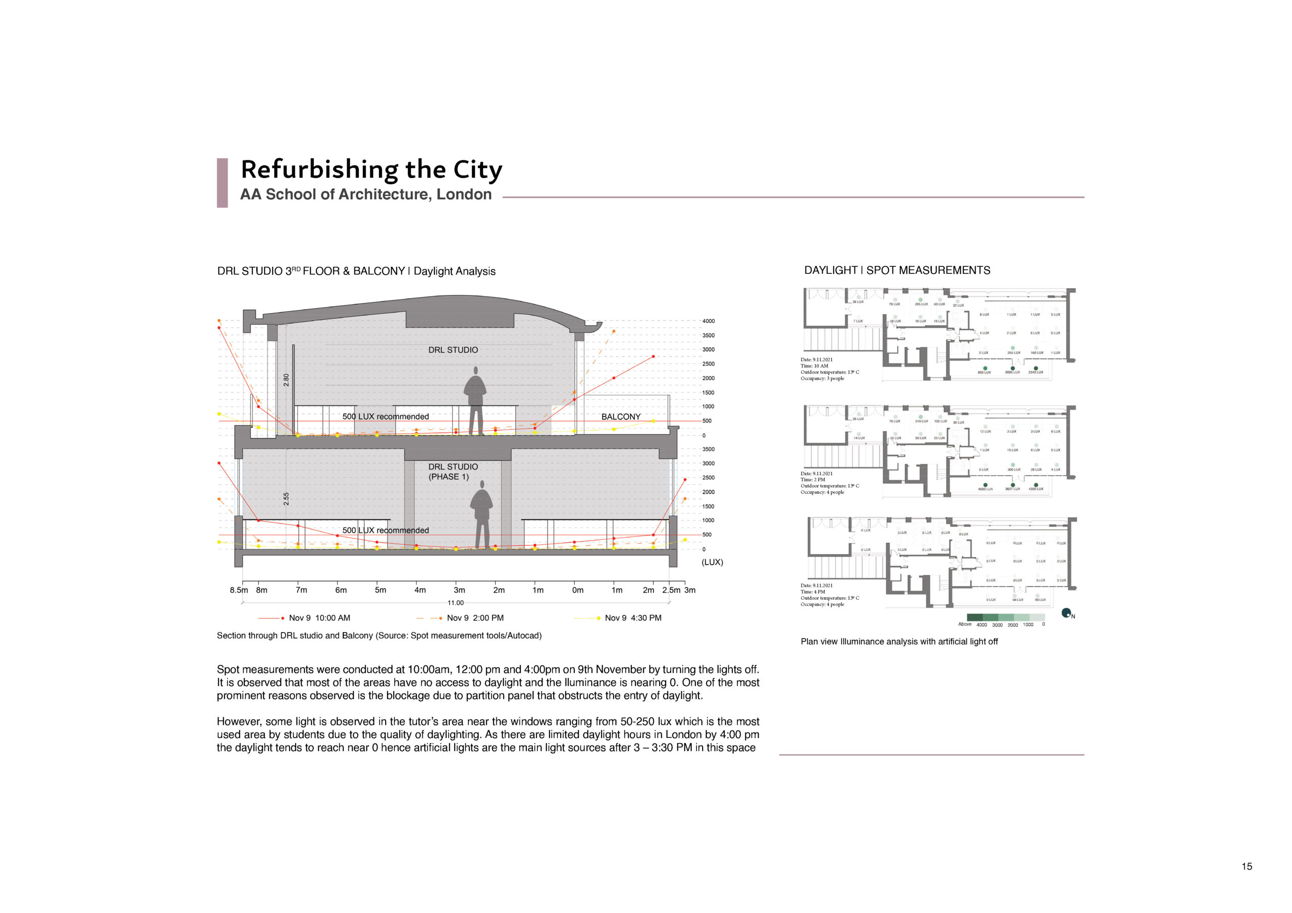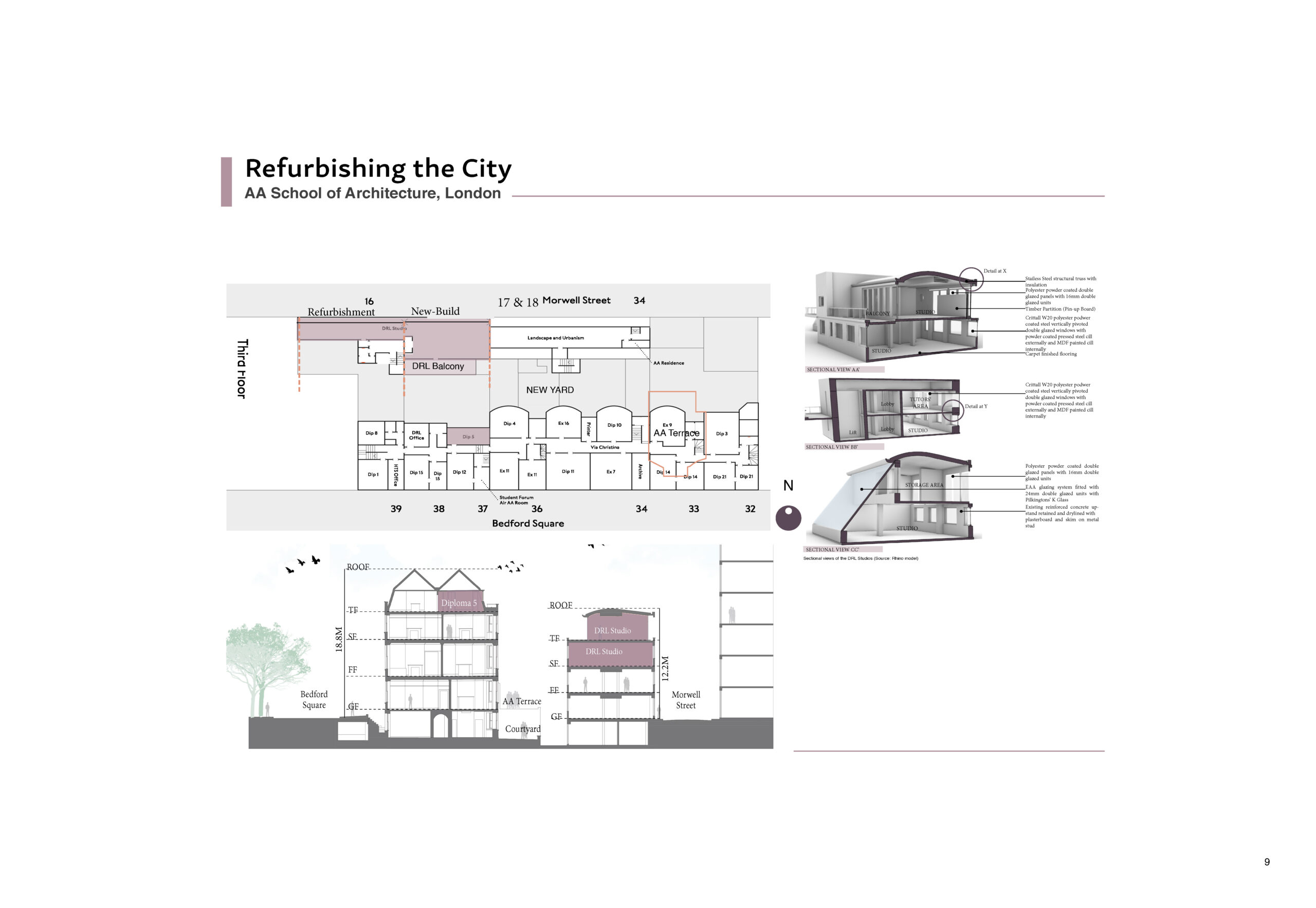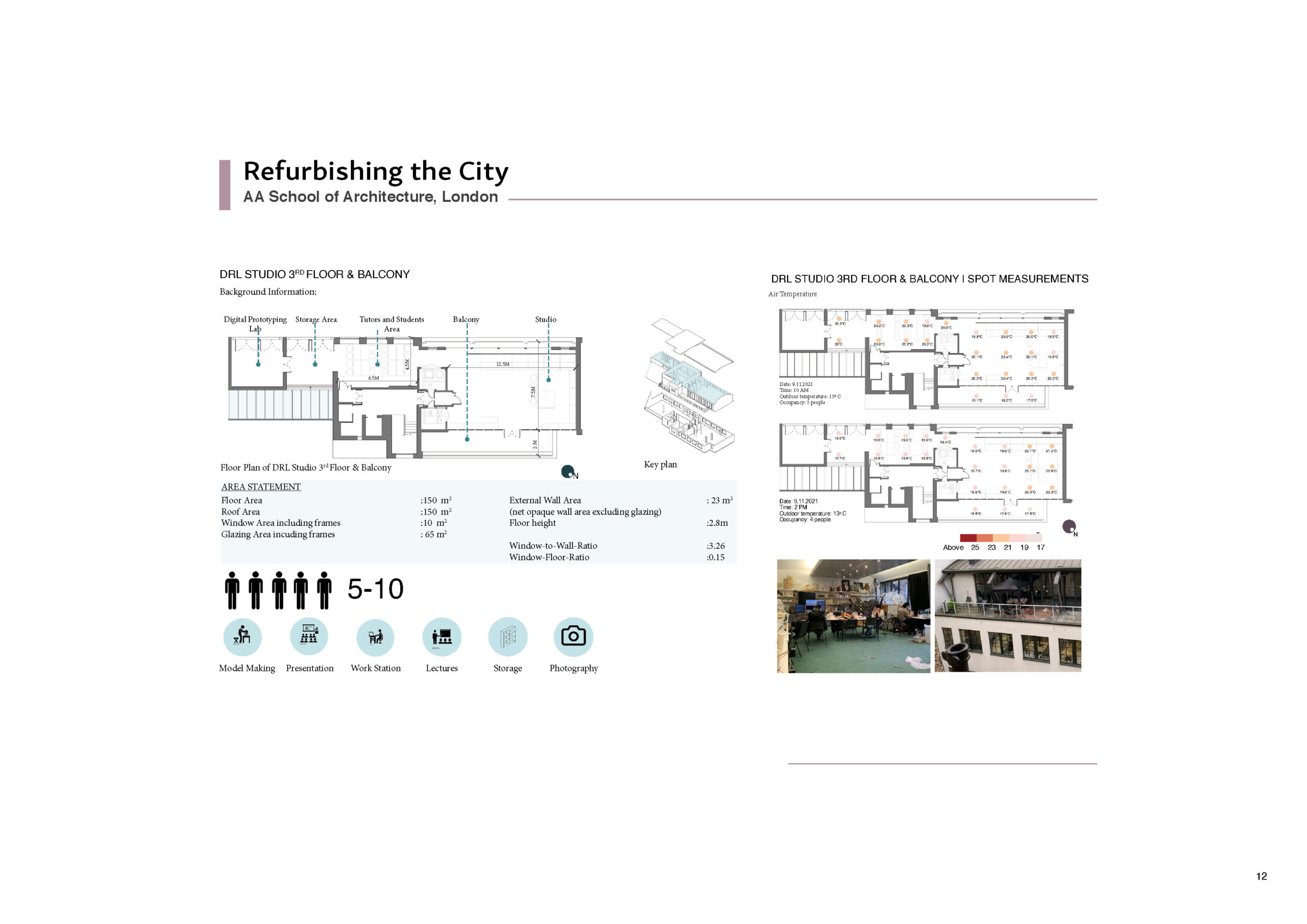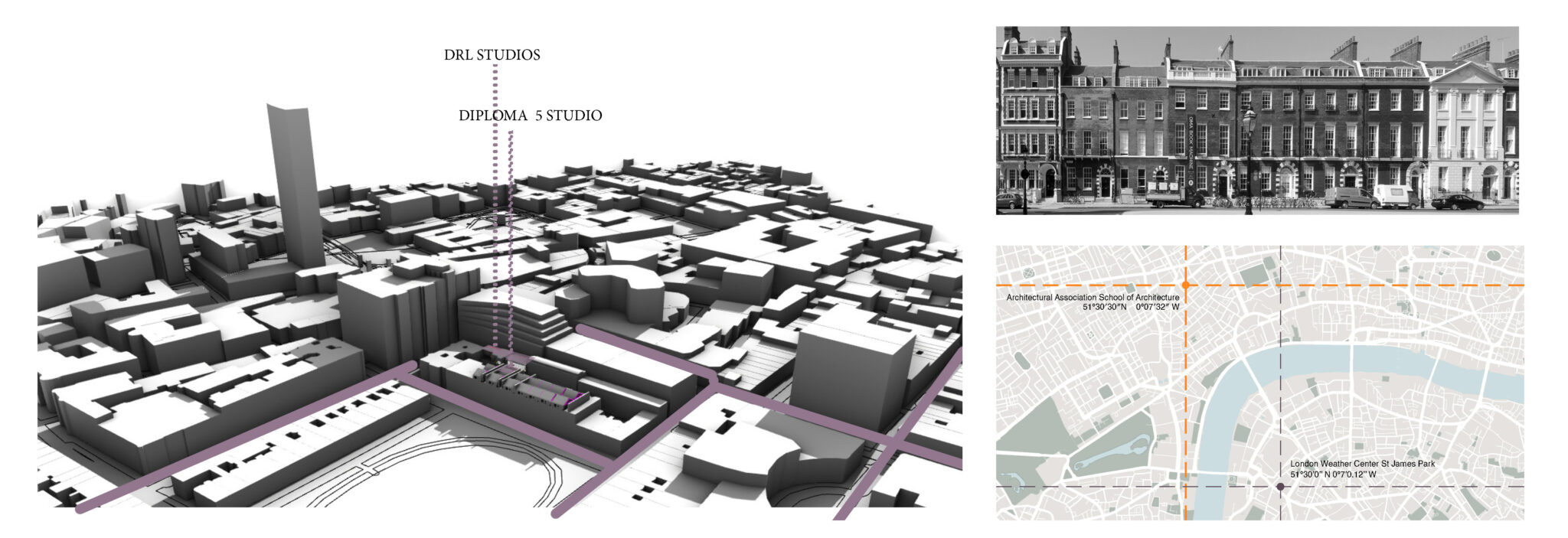 This project was part of the Group Term Project–Refurbishing the City: London Case Studies for the M.Sc-M. Arch Sustainable Environmental Design program, 2021-2022. The study for this Group project is the studio spaces of the Design Research Laboratory (DRL) on the 2nd and 3rd Floor, an attached balcony with the DRL studio on the 3rd Floor and the Diploma 5 Studio. The DRL studios are part of the new build construction buildings of the Architectural Association while the Diploma 5 Studio is part of the Georgian architecture of the AA. The AA School of Architecture is prominently located in Bloomsbury District in the Borough of Camden, in Central London.