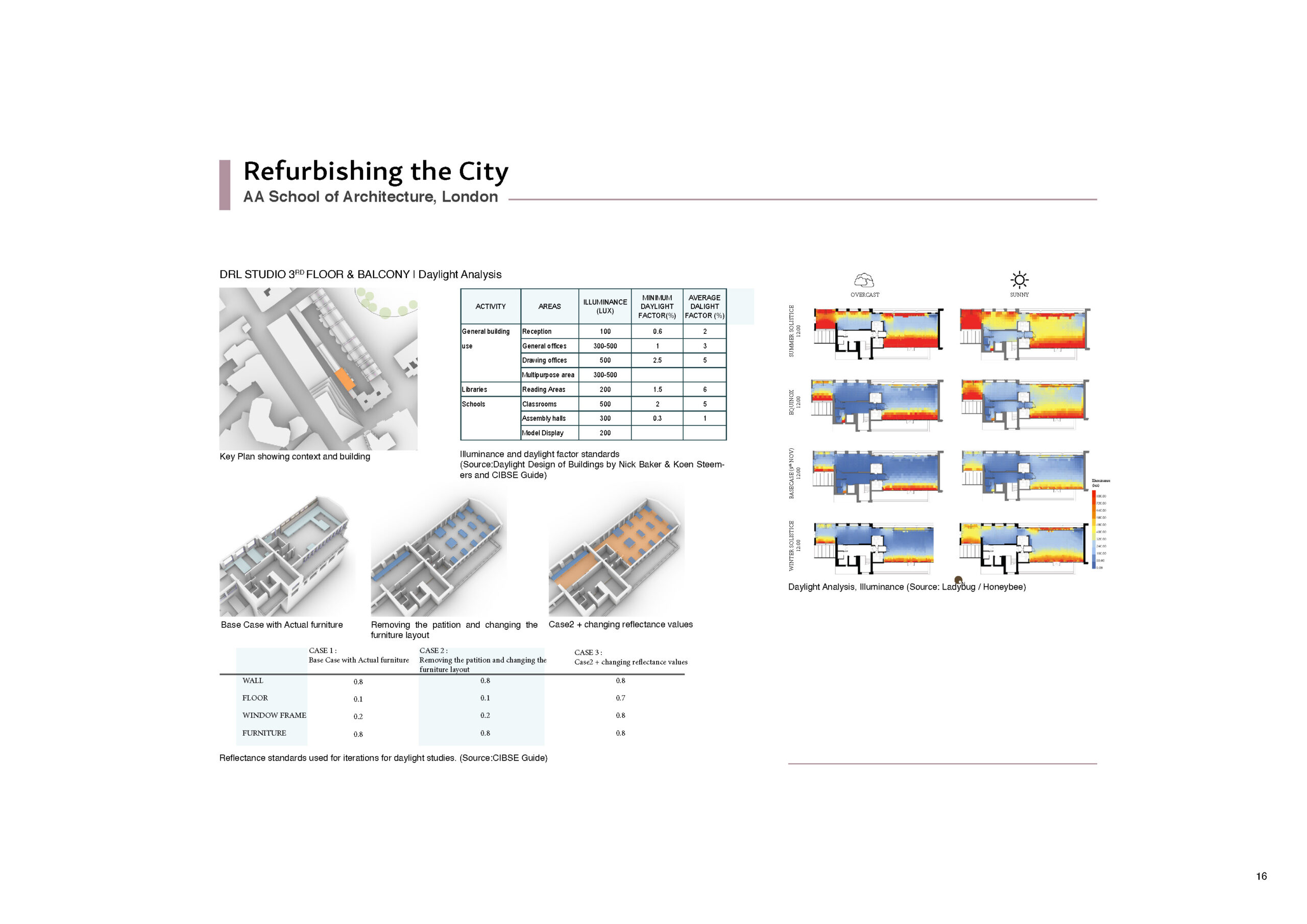 The assignment covered solar analysis, wind analysis, daylight simulations, and thermal analysis in a wide range of scenarios and recommending retrofit solutions to improve the environmental performance of these two studios.